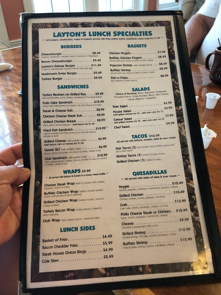 Introducing Layton's Family Restaurant, a cozy spot in Ocean City, Maryland, specializing in wraps, American cuisine, and breakfast/brunch options. With a variety of omelettes, breakfast specialties, and mouthwatering pancakes, this restaurant caters to every craving. The diverse menu includes options for vegetarians and carnivores alike, ensuring everyone leaves satisfied. Offering takeout, reservations, outdoor seating, and even catering services, Layton's is the perfect choice for any occasion. Reviews rave about the fast, friendly service, delicious food, and relaxed atmosphere. With happy hour specials, alcohol offerings, and even Wi-Fi, Layton's has something for everyone. Whether you're looking for a quick bite or a leisurely meal, Layton's Family Restaurant is a must-visit destination in Ocean City.